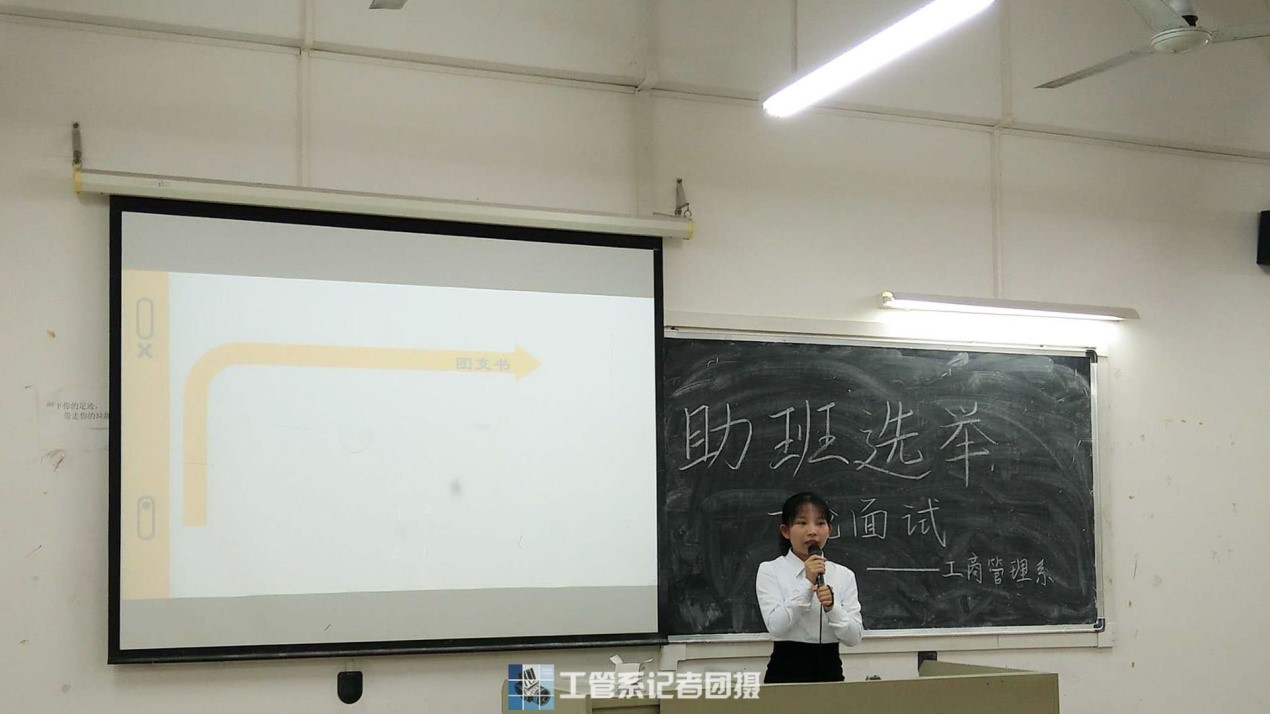 2019年4月23日星期二下午6点,工商管理系在厚德楼c301-c303举行了助班选举第一轮面试,参与此次面试的面试官分别为18级现任工商管理系各班助班:蒙群娣、王浩然、吴笛、高明光、李智权、邓健仪、蔡慧冰、梁小敏以及工商管理系学生会副主席林冰。此次助班选举主要分为四个流程分别是面试者自我介绍、谈谈自己对助班的理解、助班提问、以及面试结束后各助班的讨论交换意见。